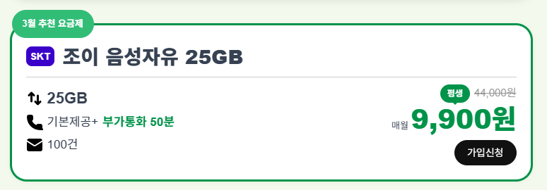 통신비 절약 끝판왕! 6,600원 요금제 사용자의 3월 알뜰폰 프로모션 서치 결과 공유. 9,900원 평생 할인 요금제부터 1년 90원 요금제까지, 내게 맞는 최적의 선택지를 확인하세요.